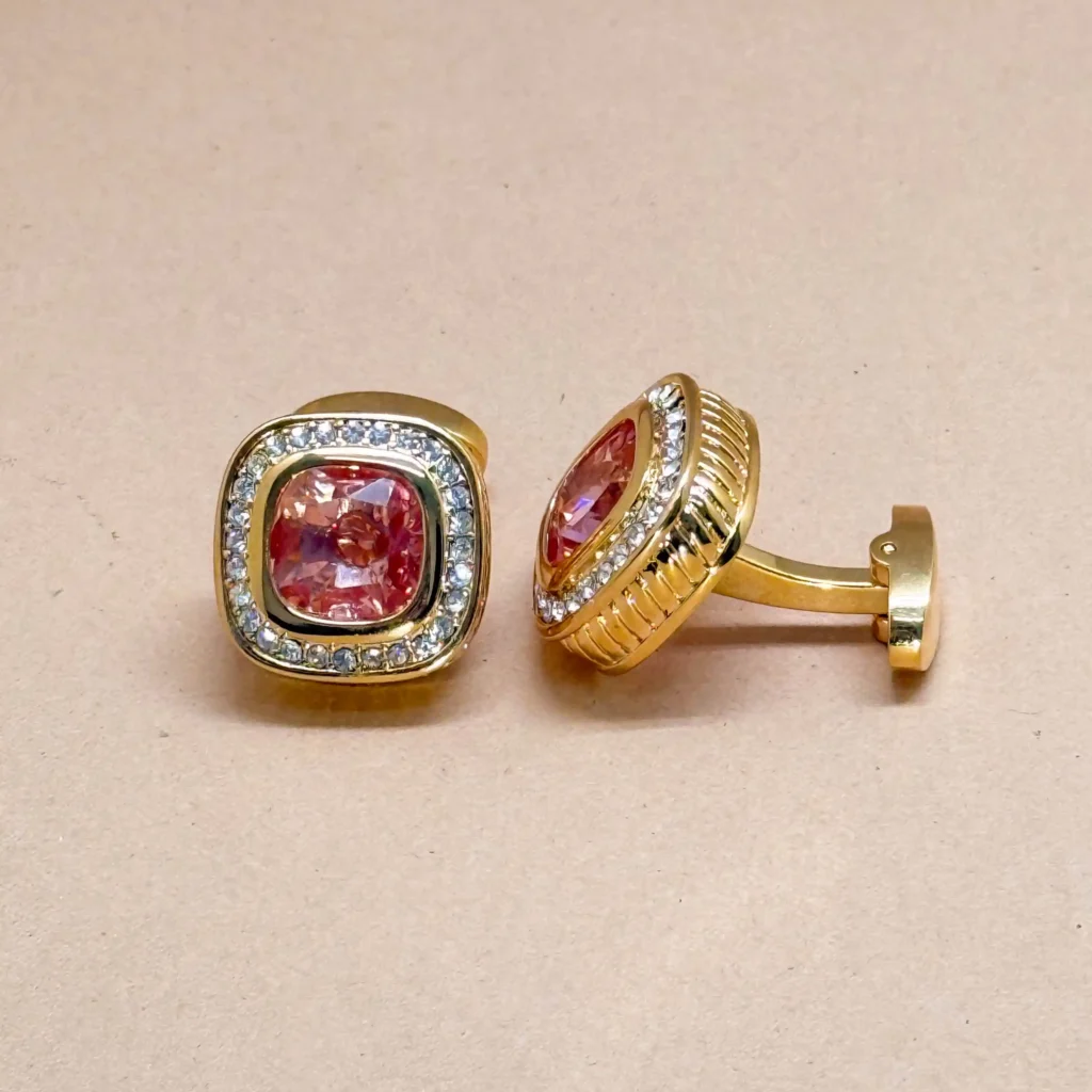 Add a touch of brilliance to your ensemble with these gold cufflinks adorned with sparkling crystals. The layered bar design reflects light from every angle, creating a dazzling effect that elevates any formal outfit. Perfect for dinners or celebratory events, these cufflinks combine opulence with contemporary flair. Crafted for durability and shine, they are the ultimate accessory for those who love to stand out.