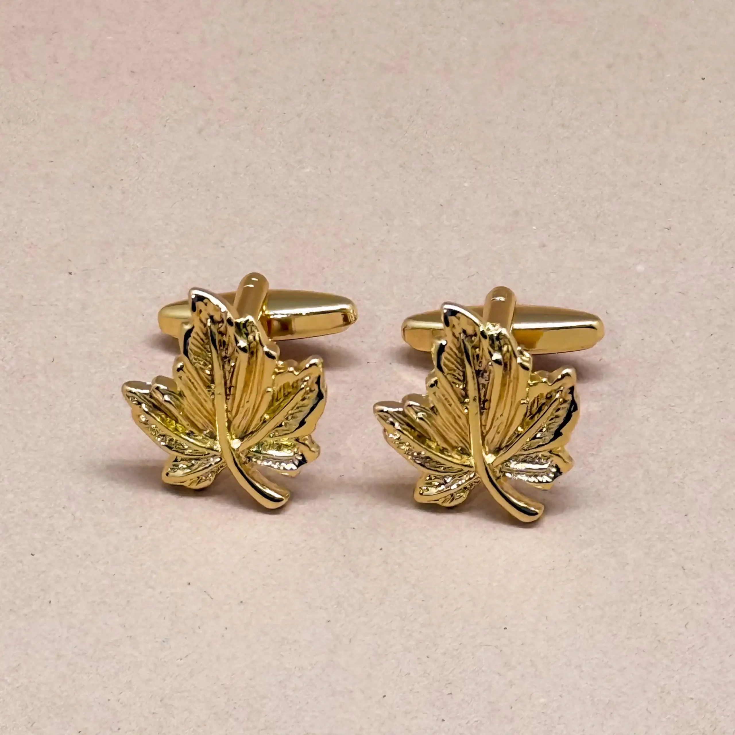 Celebrate nature’s elegance with these gold cufflinks shaped like intricate maple leaves. Their detailed craftsmanship and polished finish make them a standout accessory for formal occasions or autumn-themed events. Pair them with earth toned suits or classic black for a look that exudes sophistication and individuality. Designed for those who appreciate artistry and heritage, these cufflinks are a timeless addition to any collection.