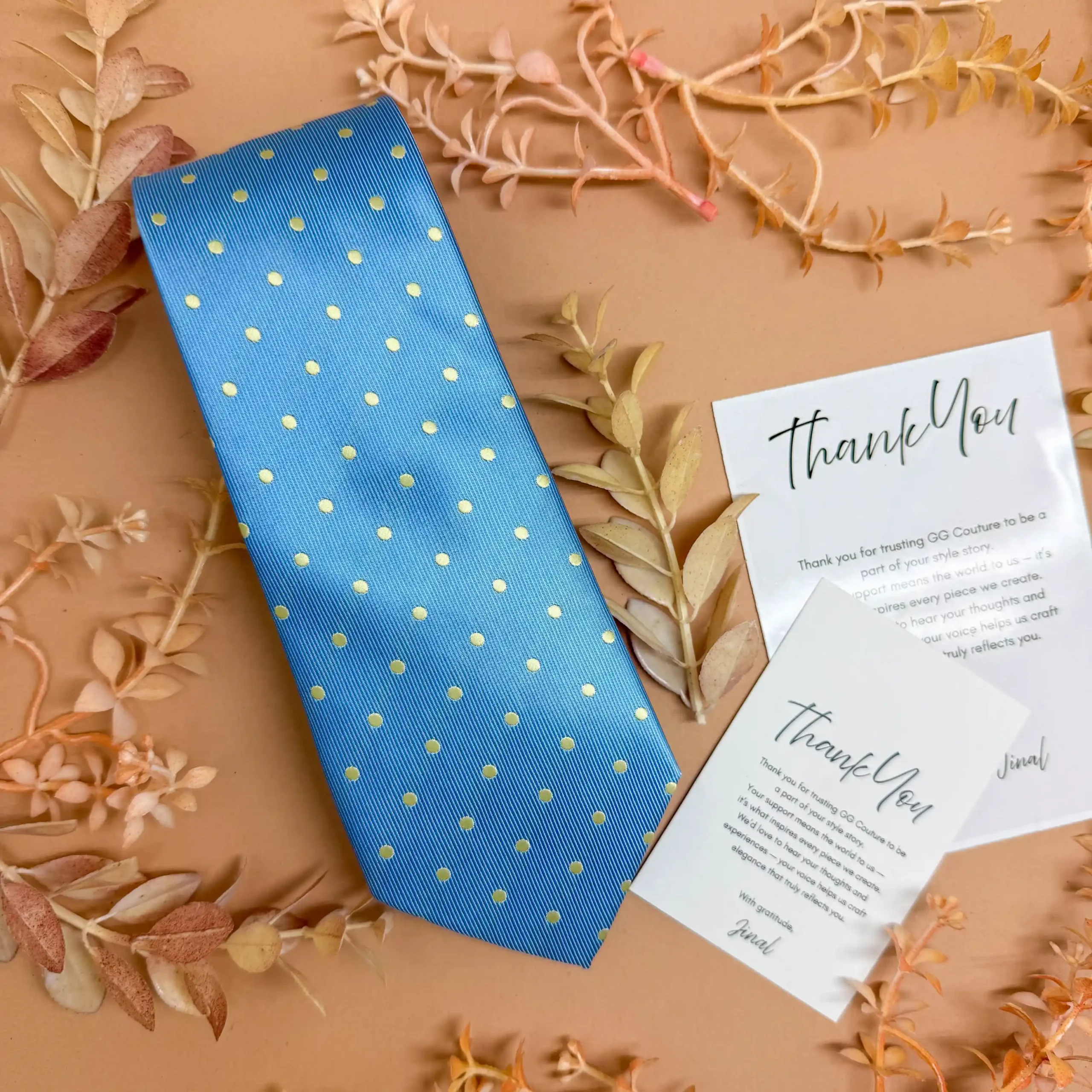 Bright and festive, this sky blue silk tie enhanced with subtle golden dots is perfect for weddings, celebrations, and summer occasions. Its luxurious sheen makes it a standout accessory for special events.